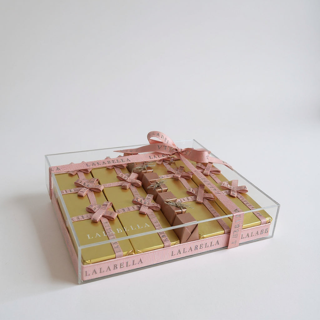 20 pcs/530kgs of mixed collection chocolates in a medium clear acrylic box