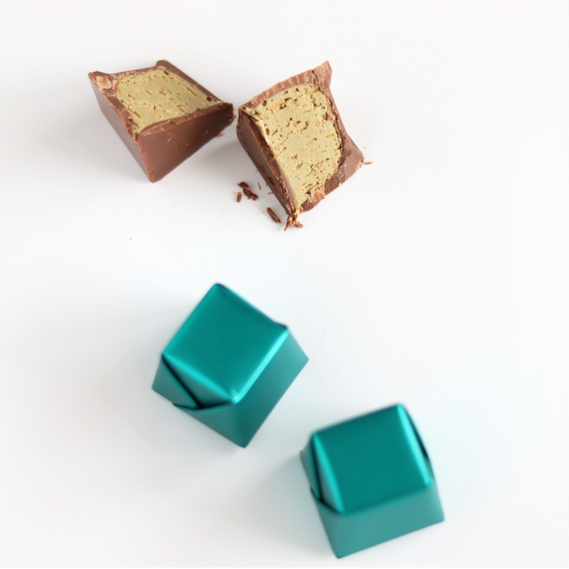 Milk Chocolate filled with Pistachio Cream & Kunafa Pieces.