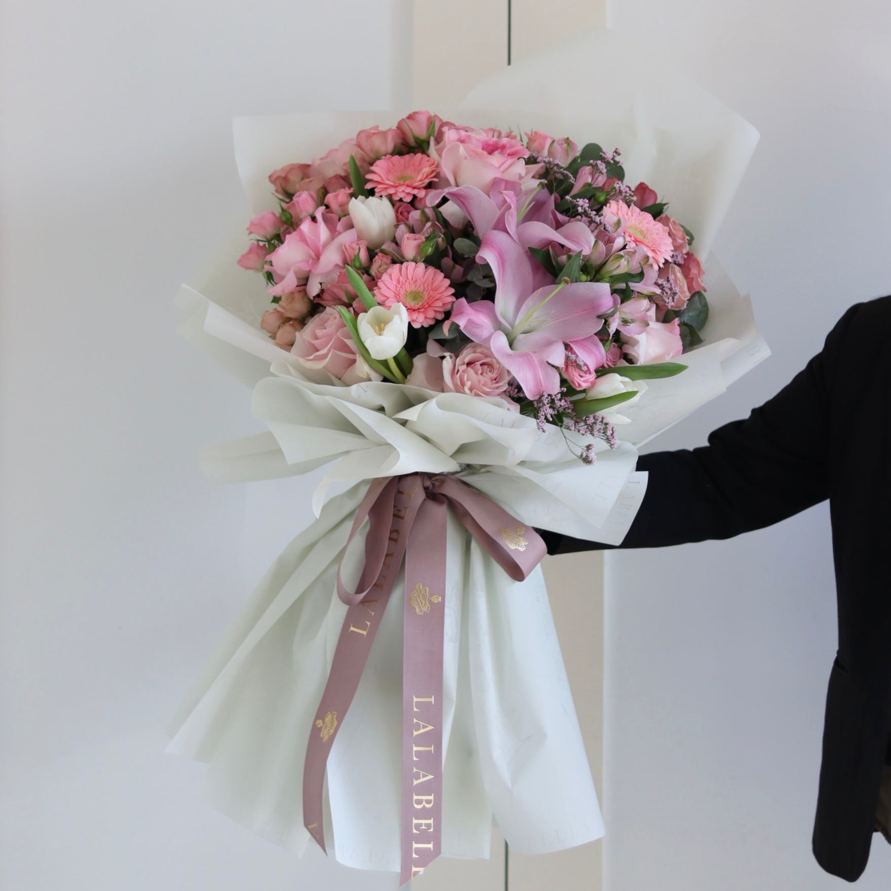 Mix of our pink shades fresh flowers hand bouquet arrangement